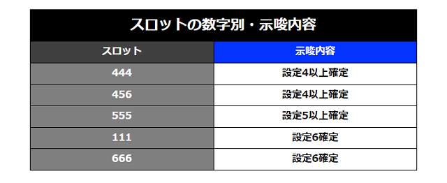サザンカスロットでは、「666」と「111」が出た場合は設定6確定! 99G消化するごとに回せるから、実戦中はチェックしてみてね。