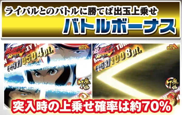 | 確変突入率 | 0.5%/100回転まで(ヘソ) 100%/100回転まで(電チュー) |