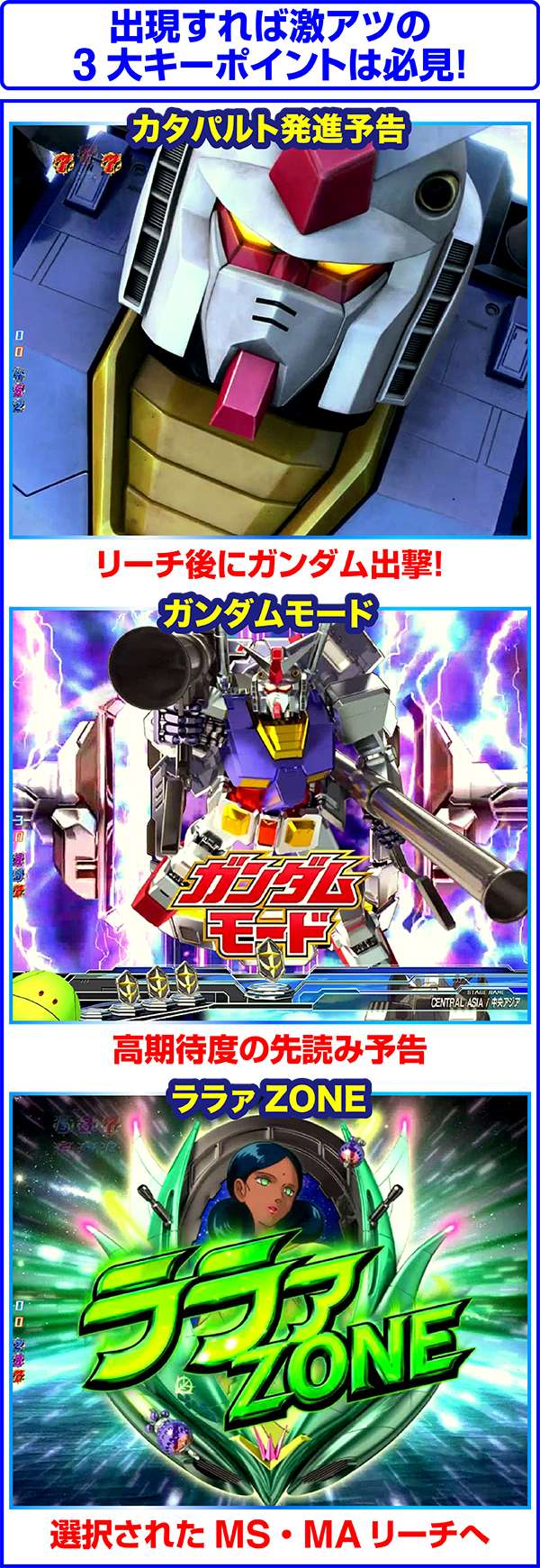 チャンスアップのニュータイプゾーンは、連邦軍時と同様に突入するほど大当りに期待がもてる。