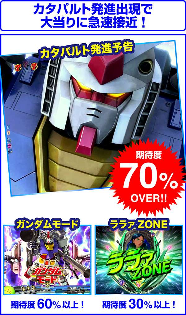 カタパルト発進とガンダムモードは高期待度パターンの出現に期待したい。