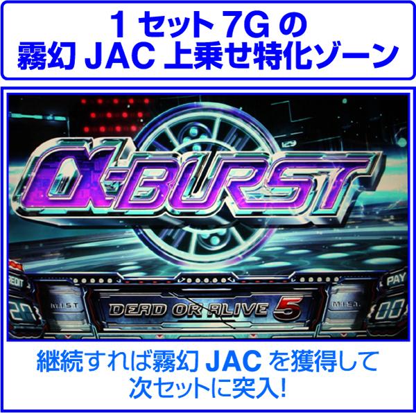 MBで抽選されるART高確率ゾーンとなっており、滞在中はMBやベルでARTが抽選される。平均期待度は約50%と高いうえ、ART当選時は特化ゾーンの「α-BURST」もついてくるため、一撃性を秘めている。