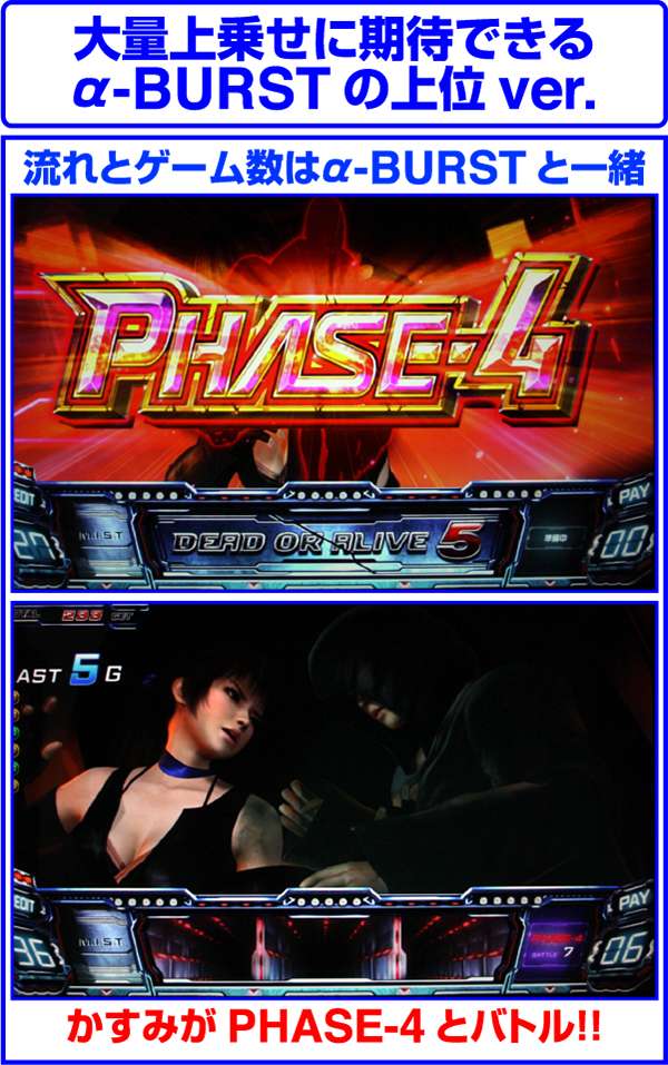 「α-BURST」の突入画面から画面が暗転して移行。基本的な流れは一緒で、かすみが敗北するまで継続。上乗せ性能が高く、大量上乗せの大チャンスとなる。