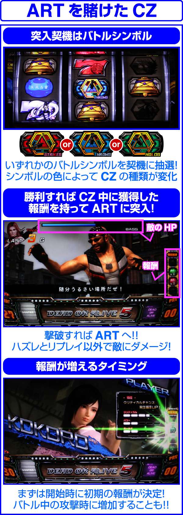 CZ中は敵を撃破すればART突入となるのだが、消化中に貯めた報酬がそのままARTの初期ベルナビ回数となるため、バトルの内容自体が非常に重要となる。基本的にバトル中はベルやレア役を引けば敵へのダメージを与えることができる。