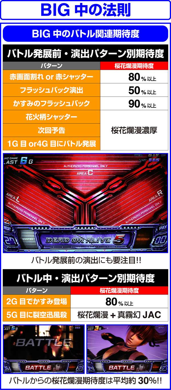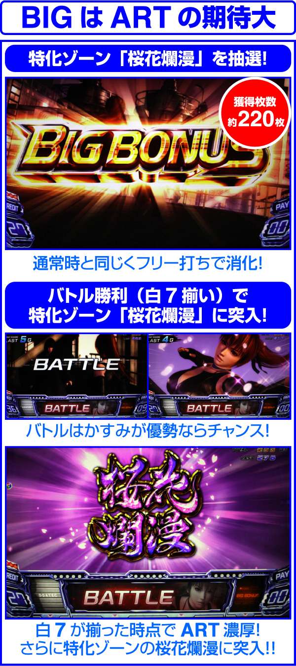 BIG中はバトルに発展すればチャンスとなり、見事勝利すれば特化ゾーンである「桜花爛漫」が開始する。