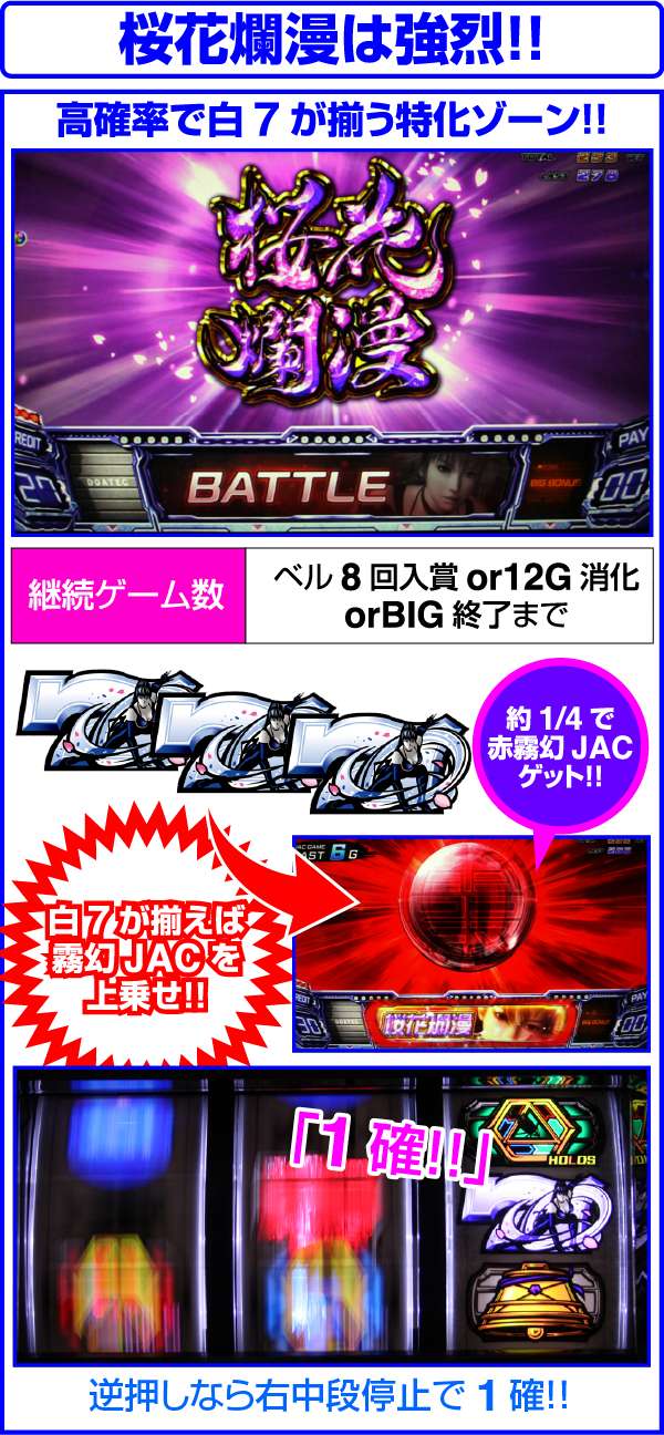 桜花爛漫に突入した時点でART濃厚となり、いずれかの霧幻JACを獲得。