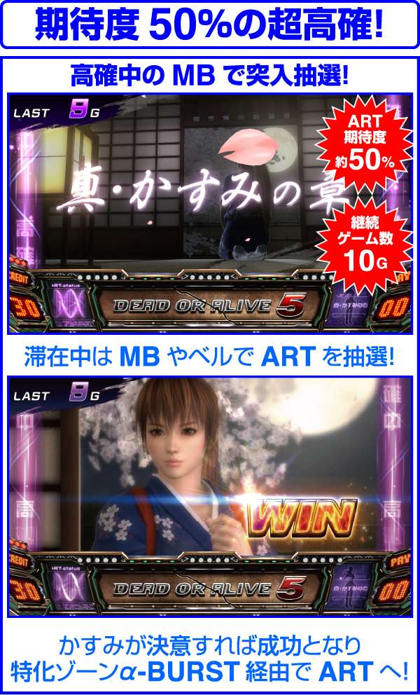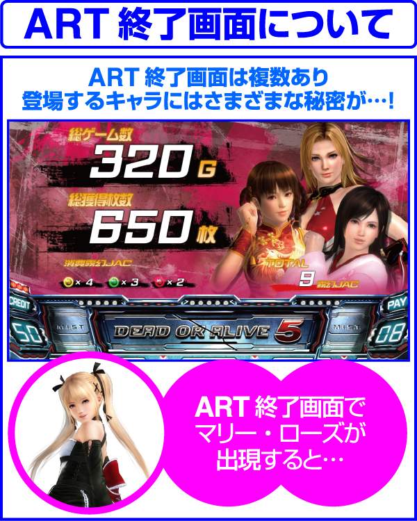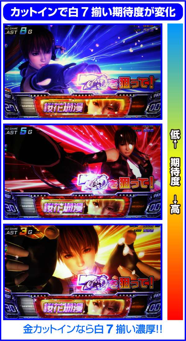 また、リサやクリスティが登場すればレジェンドモード、着物のかすみが登場すればART本前兆の期待大となる。