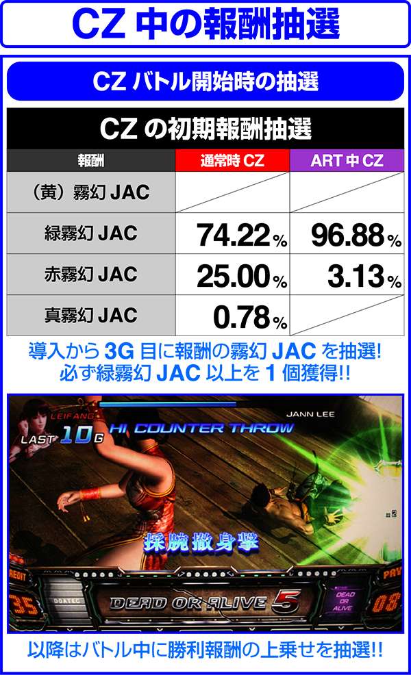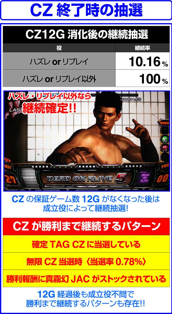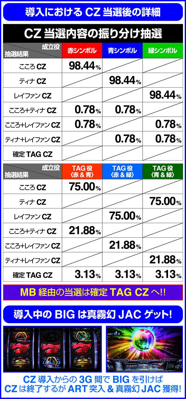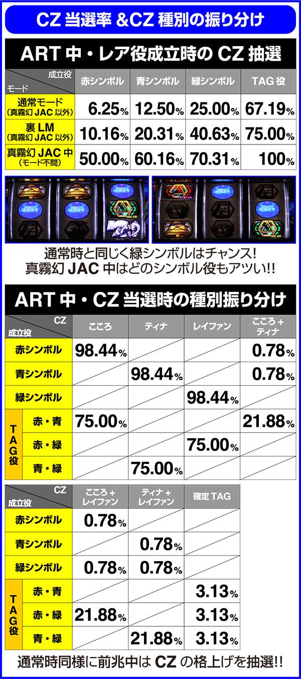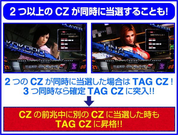 CZ当選後の前兆状態でも抽選はおこなわれており、当選後の振り分けで異なるCZが当選した場合はTAG CZに昇格する。
