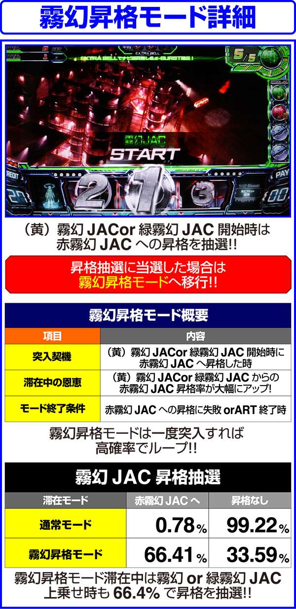 また、赤霧幻JACや真霧幻JAC開始時&上乗せ時は昇格や霧幻昇格モードへの移行はしない。