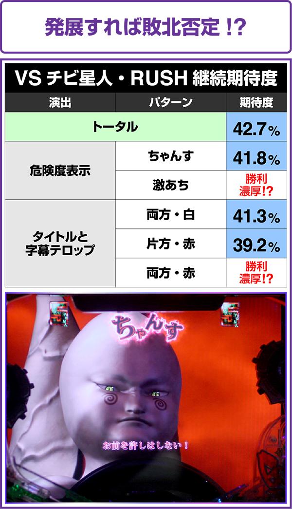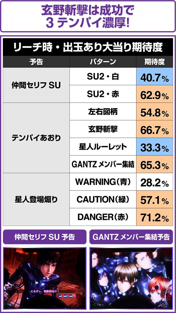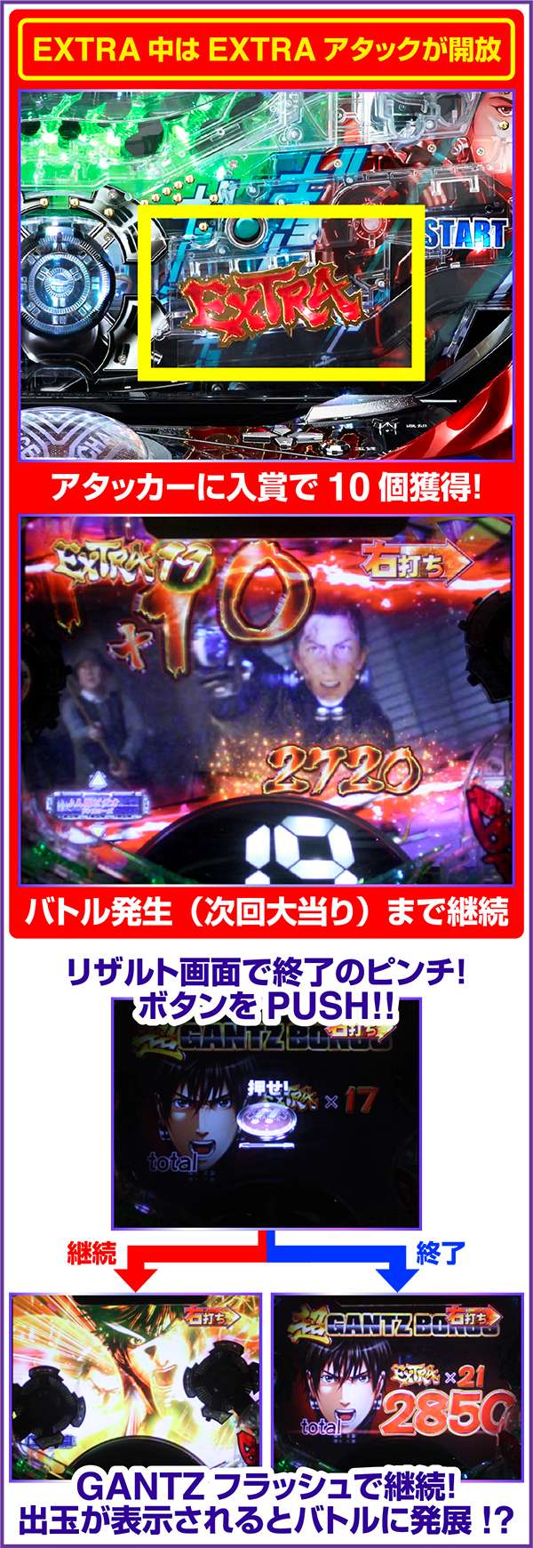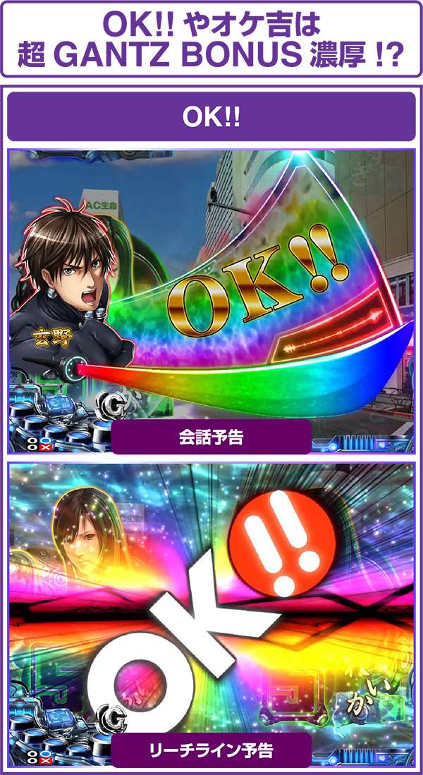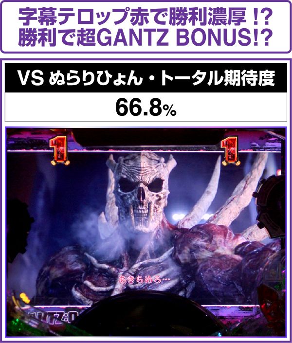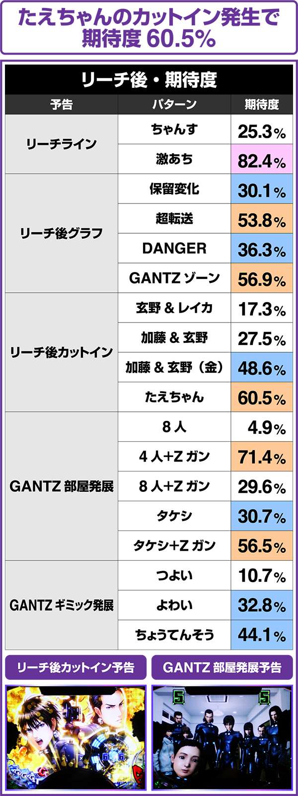 リーチ後にたえちゃん群が発生すればバトル勝利濃厚となり、星人群なら超GANTZ BONUS濃厚!?