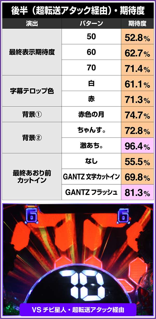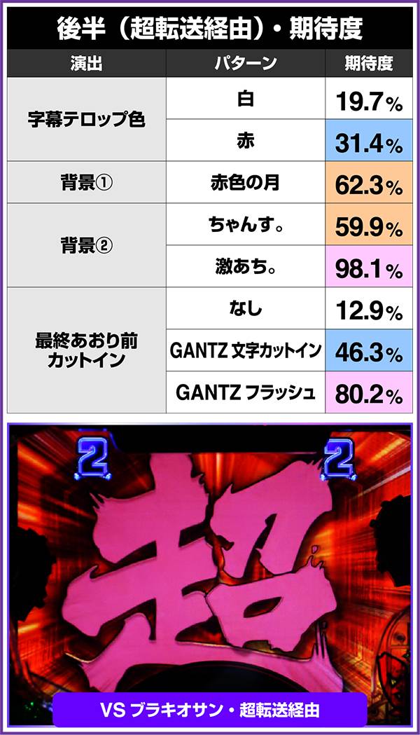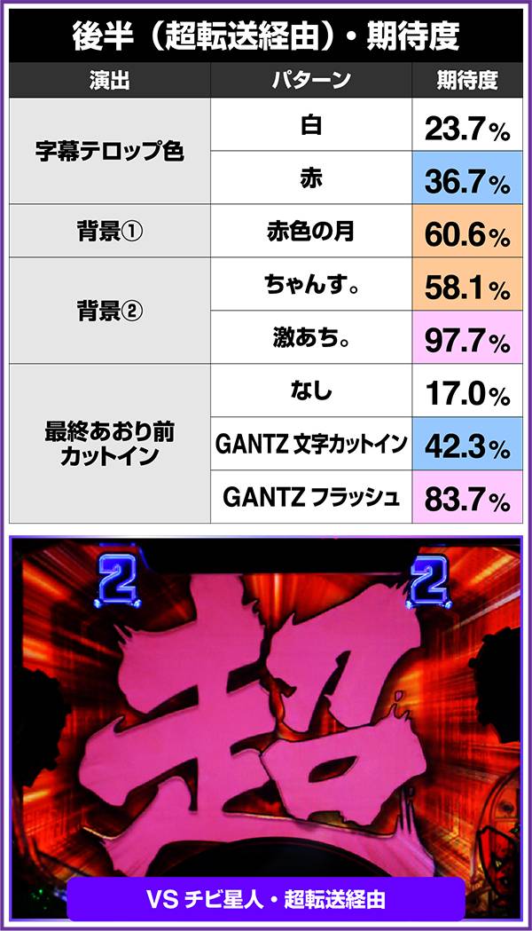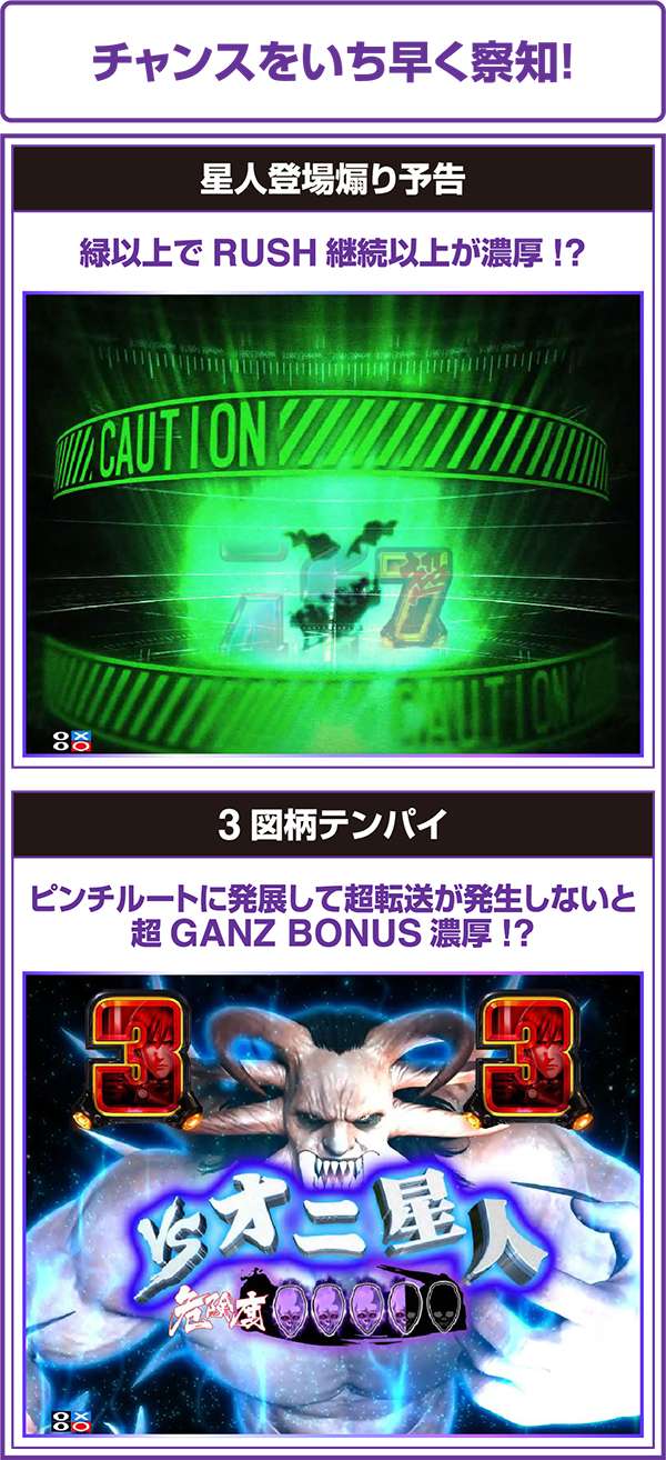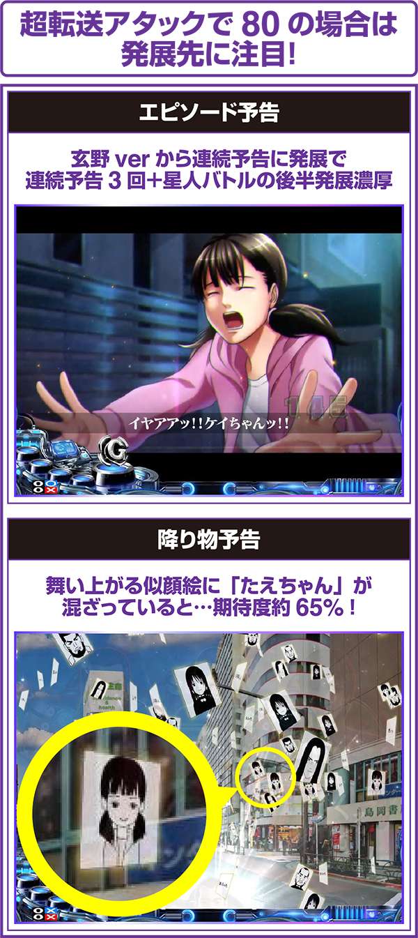 超転送演出から発展。超転送演出はテンパイ後の星人の危険度表示中や星人バトル中のピンチルート発展時などで発生。