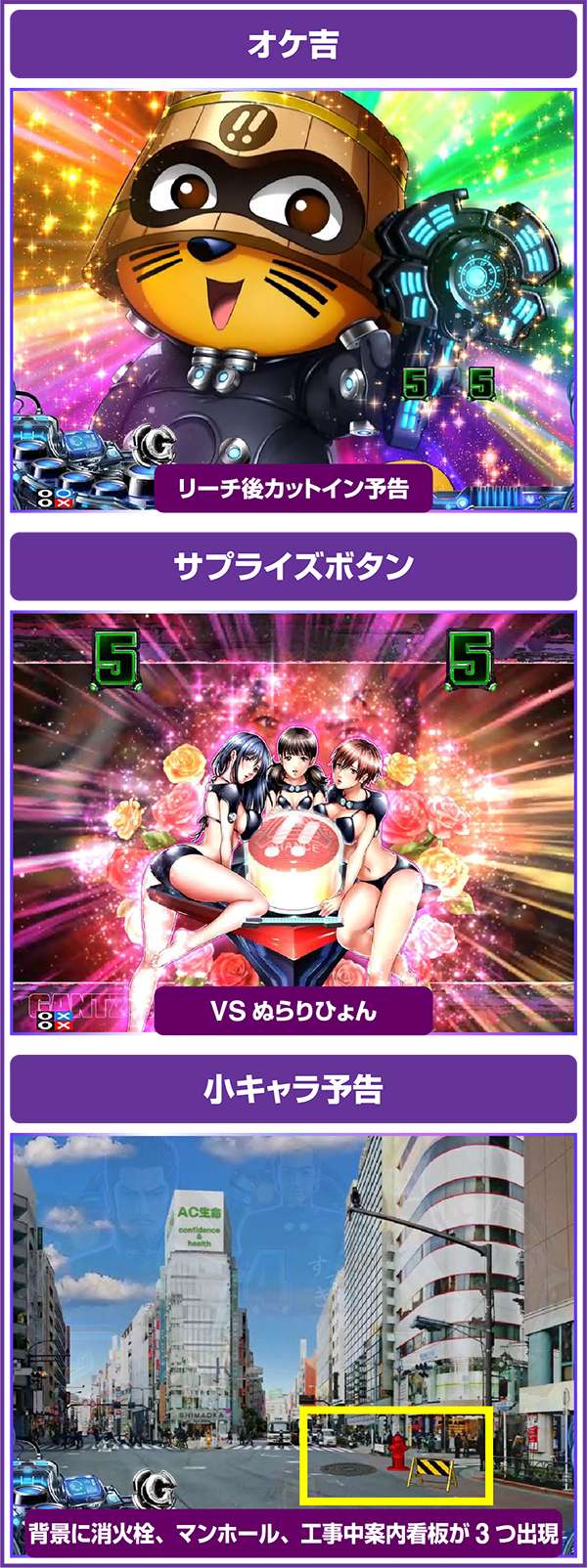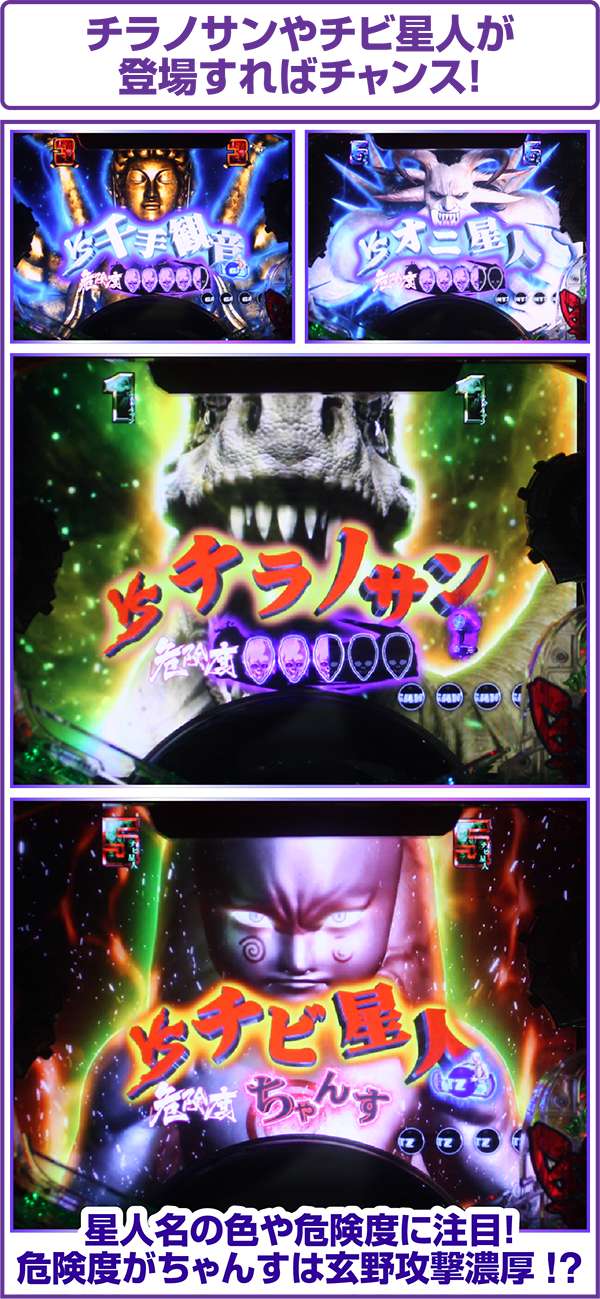 星人バトルリーチ(前編)のチャンスアップはタイトル、字幕、背景にGの文字出現の3箇所。