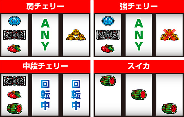 弱チェリー<スイカ<強チェリー=中段チェリー