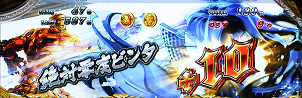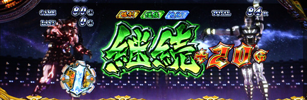 闘神ゾーンはボーナスorART終了後、設定変更後の300〜349Gと600〜649Gの間が闘神ゾーンとなり、CZに当選した場合はART確定のCZに昇格する可能性が大幅にアップ。闘神ゾーン中にISM(高確)が発動していなければ直撃ART当選率が大幅にアップする。