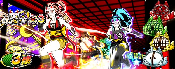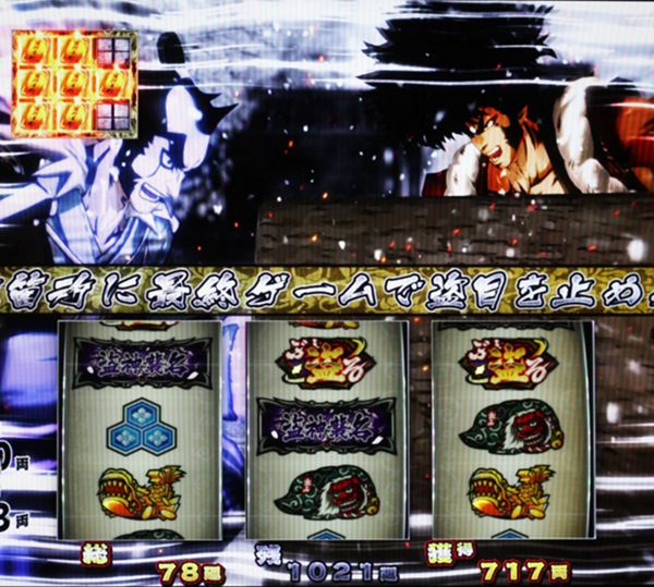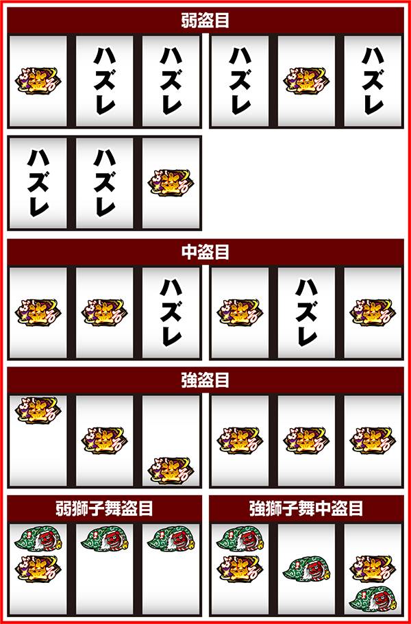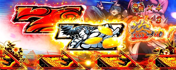 | 機種概要 | 番長シリーズの外伝となる「盗忍!剛衛門」は、純増約2.0枚/Gのゲーム数上乗せ型ART「粋三昧」が出玉増加の軸。通常時はおもに「盗目」を契機に発展する対決に勝利することで、ARTに当選する。ARTは特化ゾーンスタートのため、大量ゲーム数を持って始まる可能性もあり。絶景RUSHや超絶景ボーナス、通常時から突入するRED FOXなど、破壊力バツグンのプレミアム要素も搭載しているぞ。 |