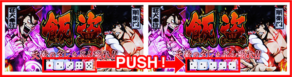 対決の期待度を示唆するサイコロは、PUSHボタンを押すことで出目が変化。変化後のパターンによっては、特定の設定が確定することもある。