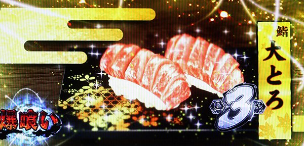 爆食い(特化ゾーン)中は寿司ネタと鉄舟のリアクションで上乗せゲーム数の示唆をおこない、ARTの最終ゲームでまとめて告知される。