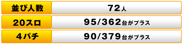 パチンコ全体では、379台中90台がプラスで、トータルの差玉数もしっかりとプラスになっていた。