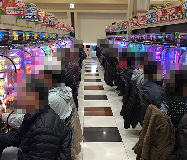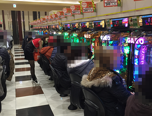 低貸し玉コーナーにも大勢の人が集合。リラックスした雰囲気のなかでじっくりと遊技を楽しめているように思えた。