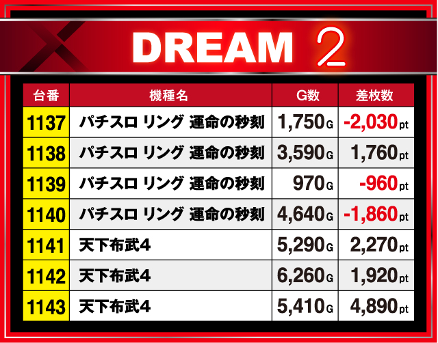 ギ:伸びずに終わった台もヒキに左右されやすい台がありますからね。それにしても『押忍!番長ZERO』は流石だし『天下布武4』って、かなり安定感あるんだなぁ。バラエティもここではお馴染みになりつつありますし、毎回良い意味で憎い仕掛けをしてきますね〜。