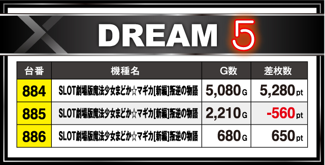 ナ:『SLOT劇場版魔法少女まどか☆マギカ[新編]叛逆の物語』は2/3でプラスでしたが、その中の1台は5000枚超えと、この日1番の結果が出ていましたね!