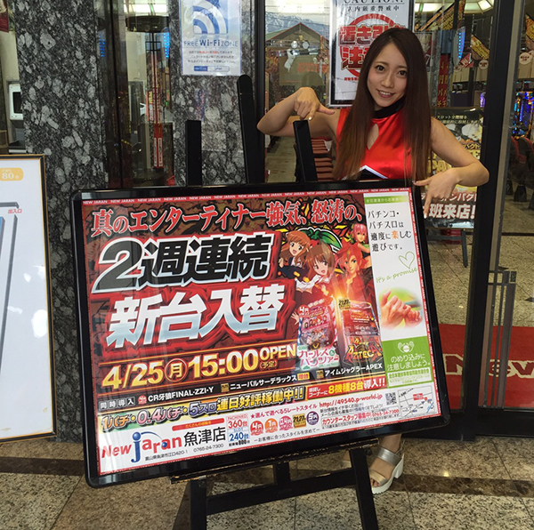 4月30日、富山県魚津市にある「ニュージャラン魚津店」にて、REALガールをおこなった。
