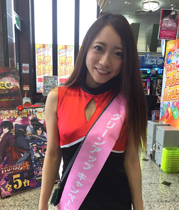 ゴミ回収や遊技台の拭き掃除など、快適な空間づくりにもしっかりと取り組んでいた。