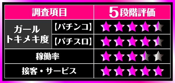 遊技空間内はもちろんのこと、ホールの入り口や通路などにも清掃が行き届いており、つねに清潔感が感じられたことも印象深い。