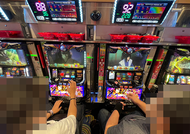『L ベルセルク無双』や新台の『パチスロ からくりサーカス』にも空き台はなく、大きくにぎわっていた。