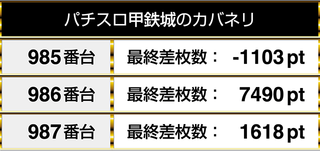 『パチスロ甲鉄城のカバネリ』にもプラスptが連なる場所があり、7000pt以上のデータも残っていた。