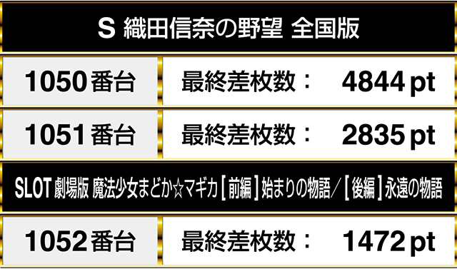 2台設置の『S 織田信奈の野望 全国版』に4844pt、2835ptが並ぶ!!