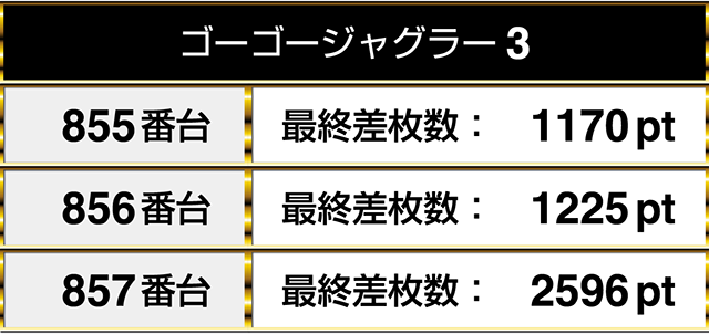 閉店時には855番台から857番台までが並んで1000ptを上回った。