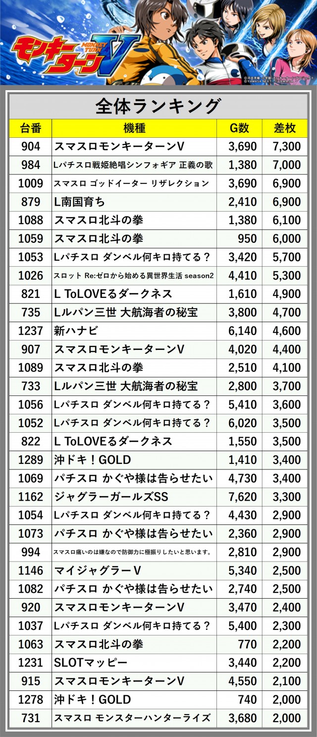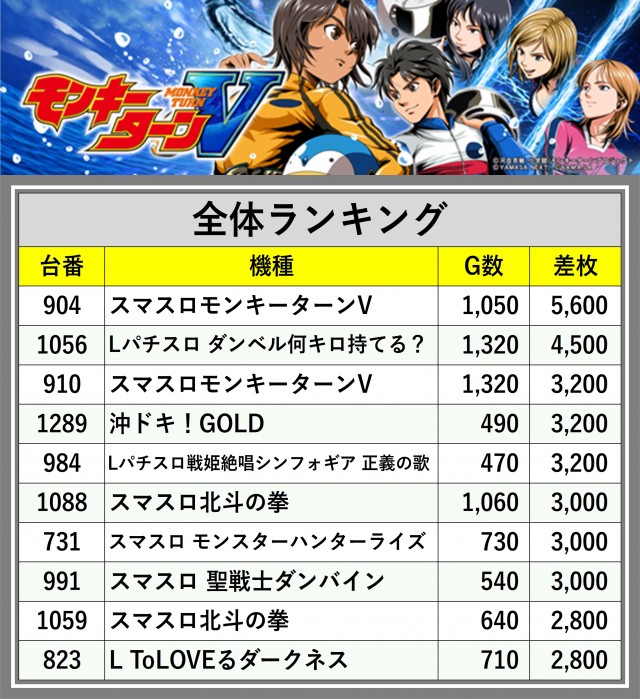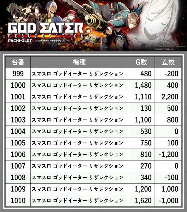 厳選された取材対象機種をはじめ、その他スロット全体から好記録が飛び出した!プレイヤーが楽しんだ1日を下記データにて振り返ってみて欲しい。