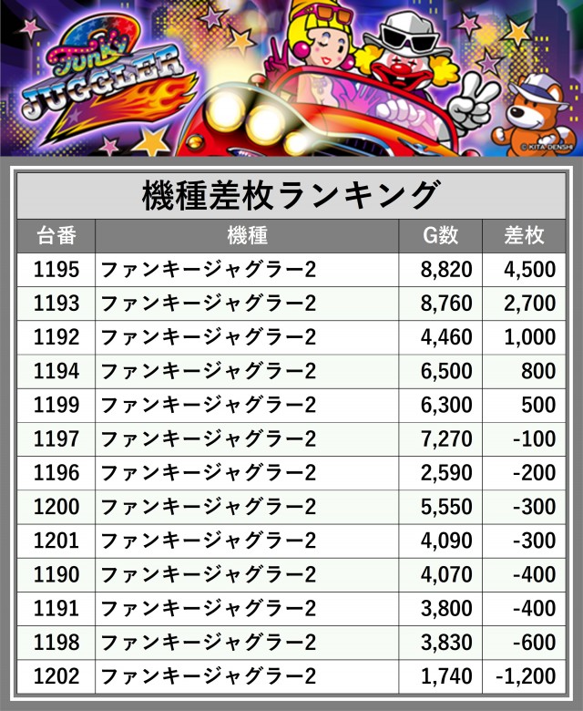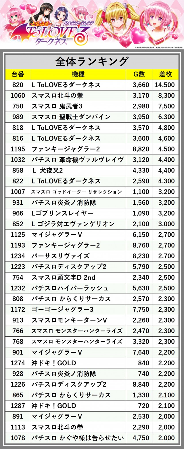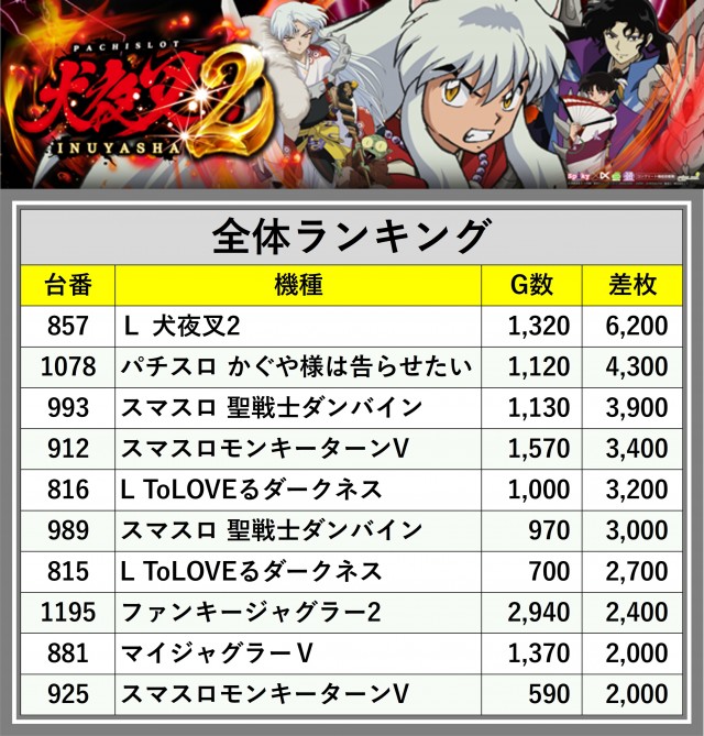 厳選された取材対象機種をはじめ、その他スロット全体から好記録が飛び出した!プレイヤーが楽しんだ1日を下記データにて振り返ってみて欲しい。