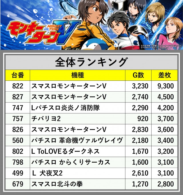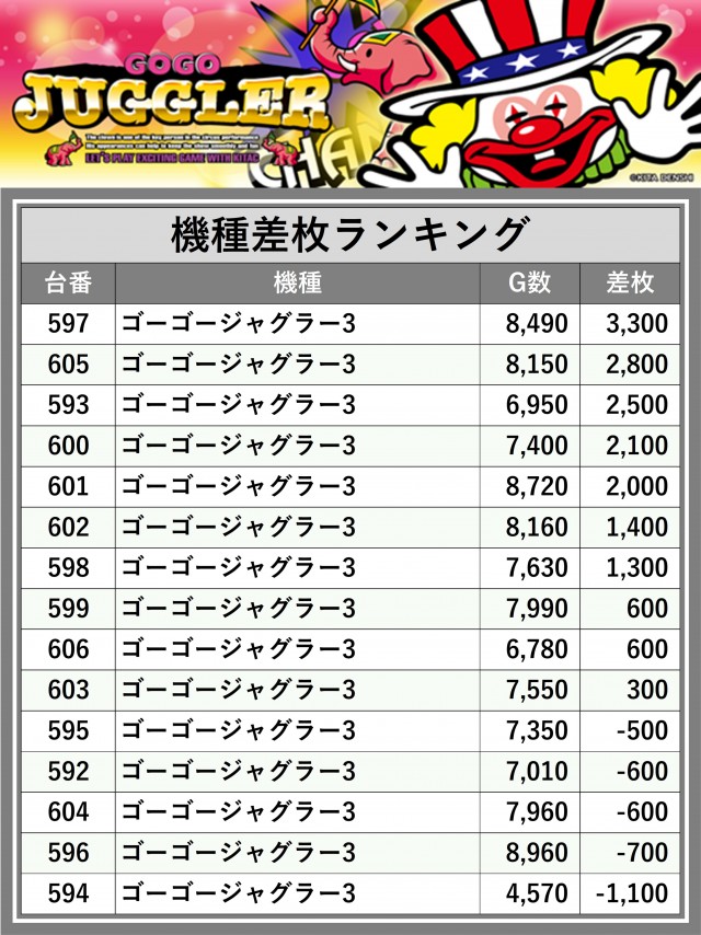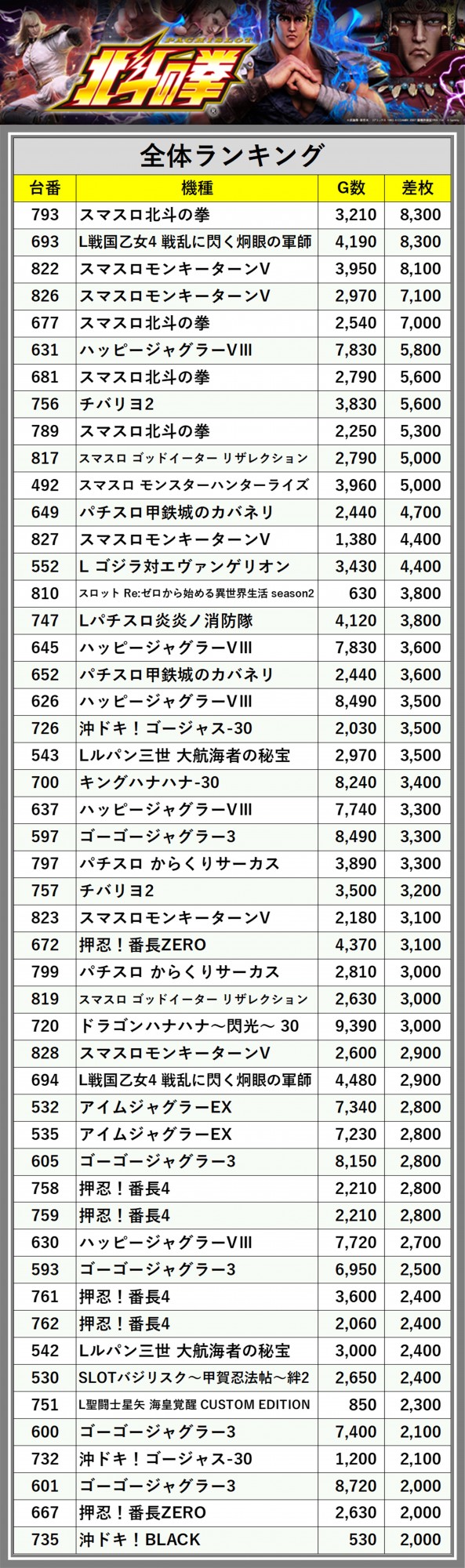 ※差枚数順に掲載しています