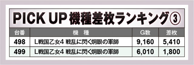 『スマスロモンキーターンV』『スマスロ ゴッドイーター リザレクション』『L戦国乙女4 戦乱に閃く炯眼の軍師』『スマスロ北斗の拳』は大台突破台を確認できるばかりか、いずれも終日を通して打ち込まれた形跡が見られる。それほどの好感触を得ていたという証拠で、ファンは満足度の高い1日を過ごせたことだろう。高い活気が熱気へと昇華した点は、何よりも同店の実力を証明していると言える。