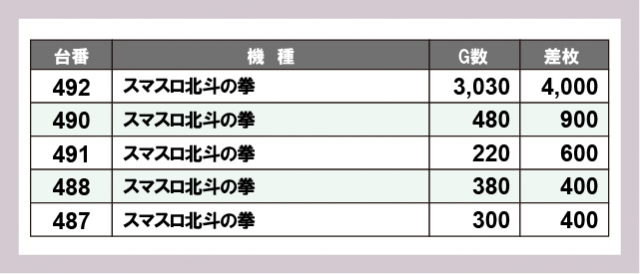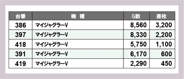 ※差枚数順に掲載しています