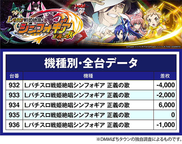 「Lパチスロ戦姫絶唱シンフォギア 正義の歌」では、934番台が6,000ptクラス!!