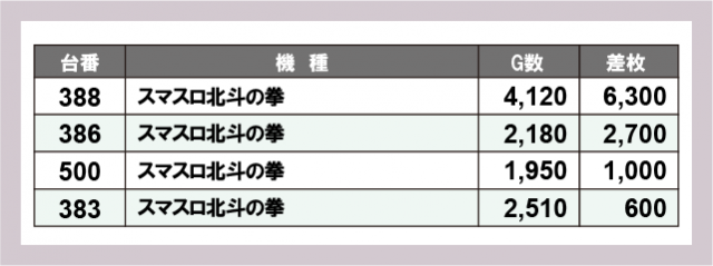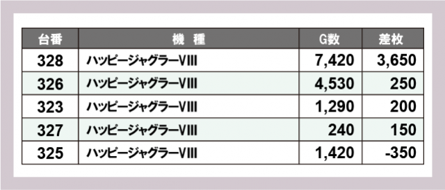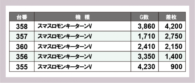 ※差枚数順に掲載しています