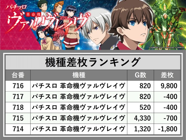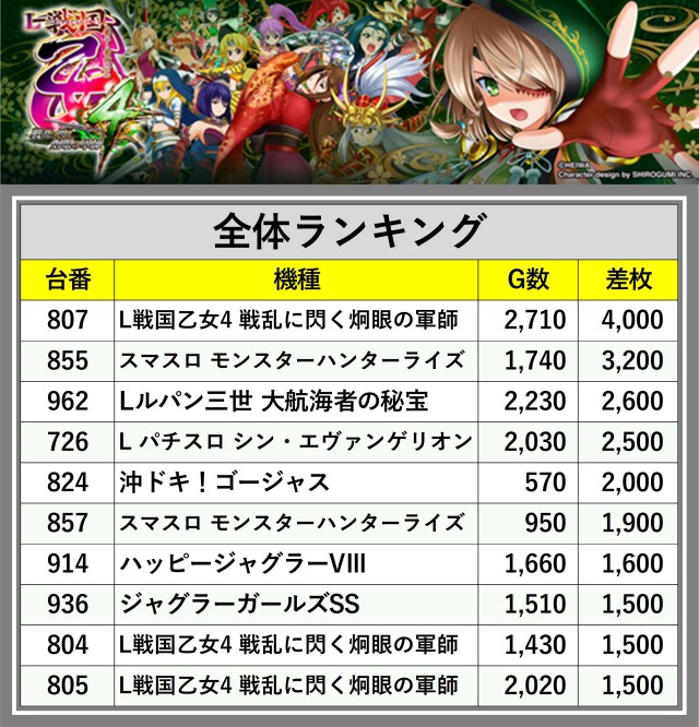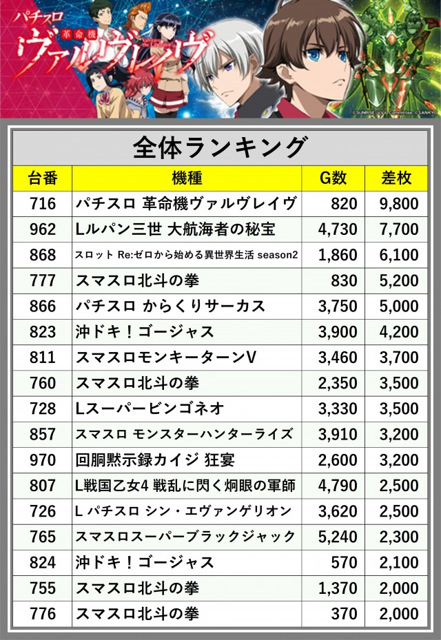 ※差枚数順に掲載しています