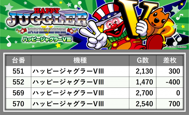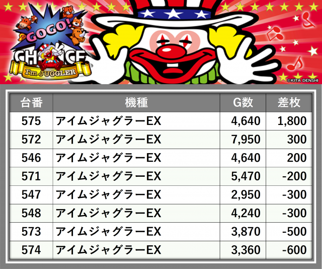 厳選された取材対象機種をはじめ、その他スロット全体から好記録が飛び出した!プレイヤーが楽しんだ1日を下記データにて振り返ってみて欲しい。