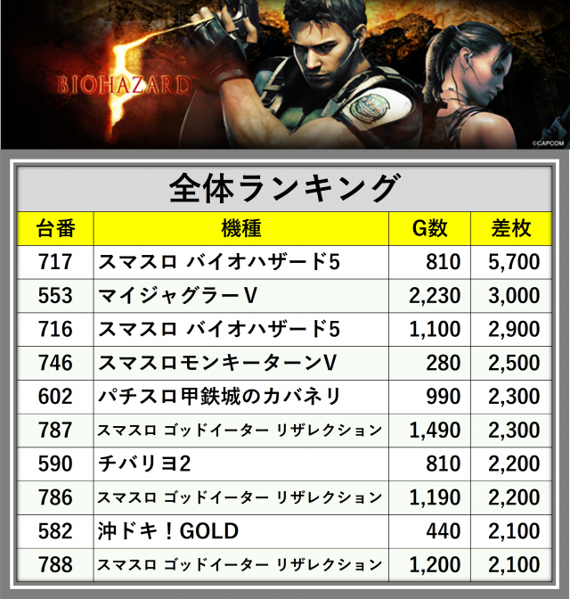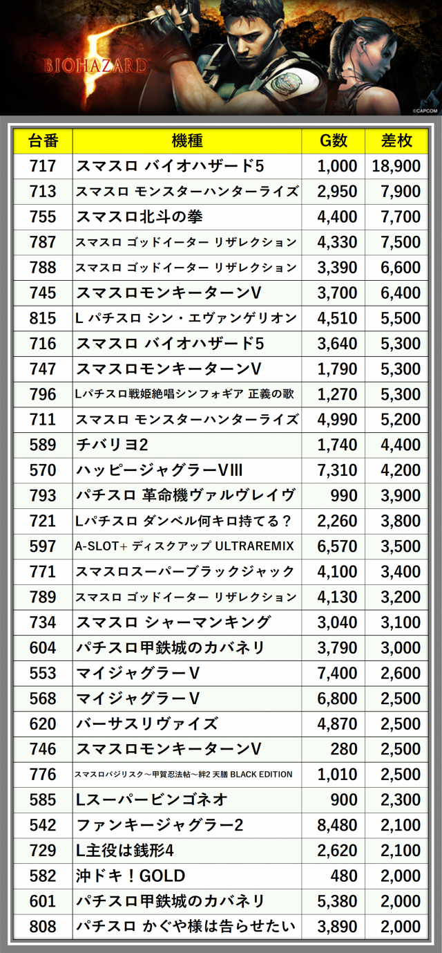 ※差枚数順に掲載しています