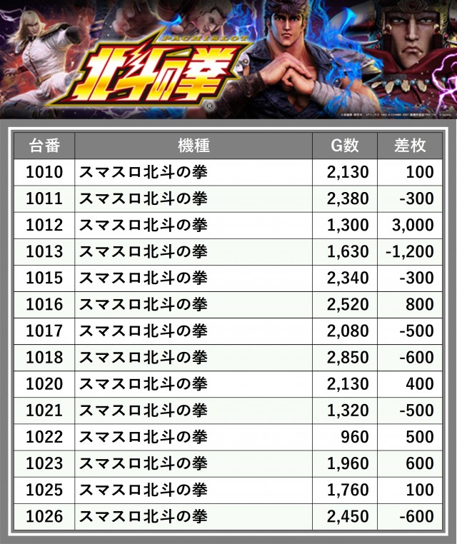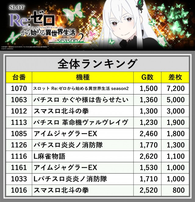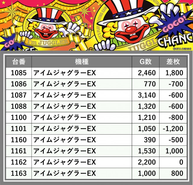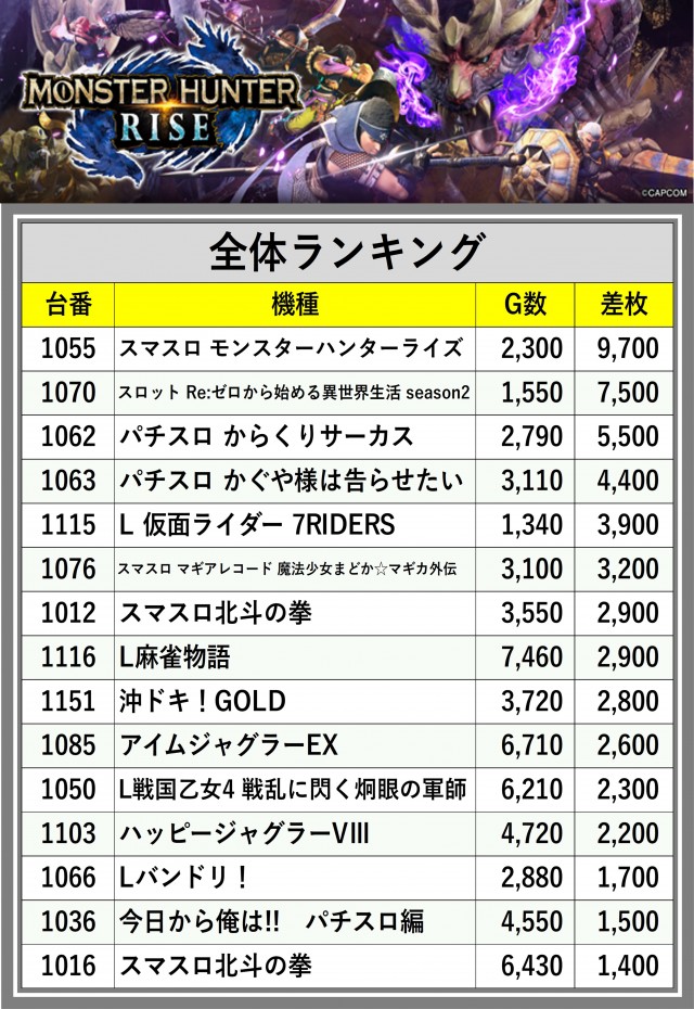 厳選された取材対象機種をはじめ、その他スロット全体から好記録が飛び出した!プレイヤーが楽しんだ1日を下記データにて振り返ってみて欲しい。