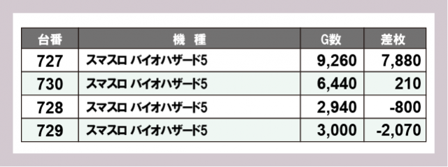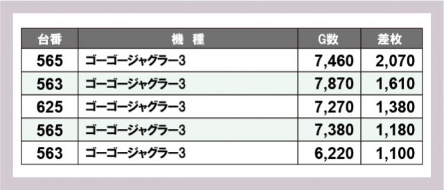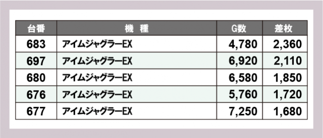 ※差枚数順に掲載しています