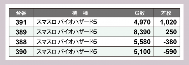 この日20スロコーナーでは2機種に注目したが、どちらも物足りない出玉の伸びであったのは少し残念だった。