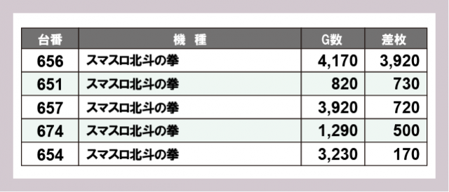 ※差枚数順に掲載しています