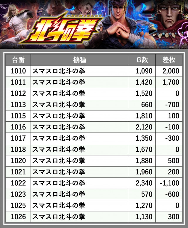 ※台番順に掲載しています