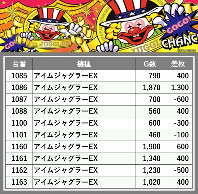厳選された取材対象機種をはじめ、その他スロット全体から好記録が飛び出した!プレイヤーが楽しんだ1日を下記データにて振り返ってみて欲しい。