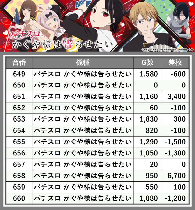 ※差枚数順に掲載しています