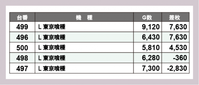 ※差枚数順に掲載しています