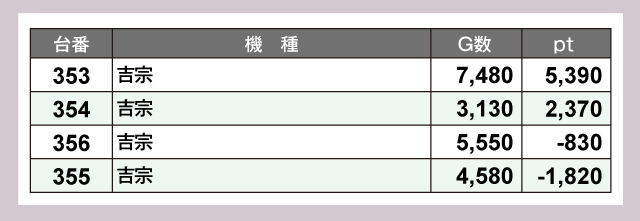 4台設置の『吉宗』は2台がプラスptで、かつトータルptでも大きくプラスを叩きだしている。
